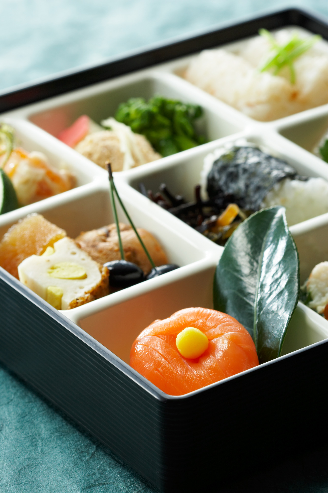 フードフォトシンガポール航空の緑のイメージを採用した機内食メニュー、お弁当写真撮影。